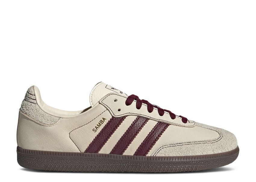 La Adidas Samba OG Wonder White Maroon s��impose comme une pi��ce incontournable du catalogue , fusionnant h��ritage footballistique et style urbain intemporel.