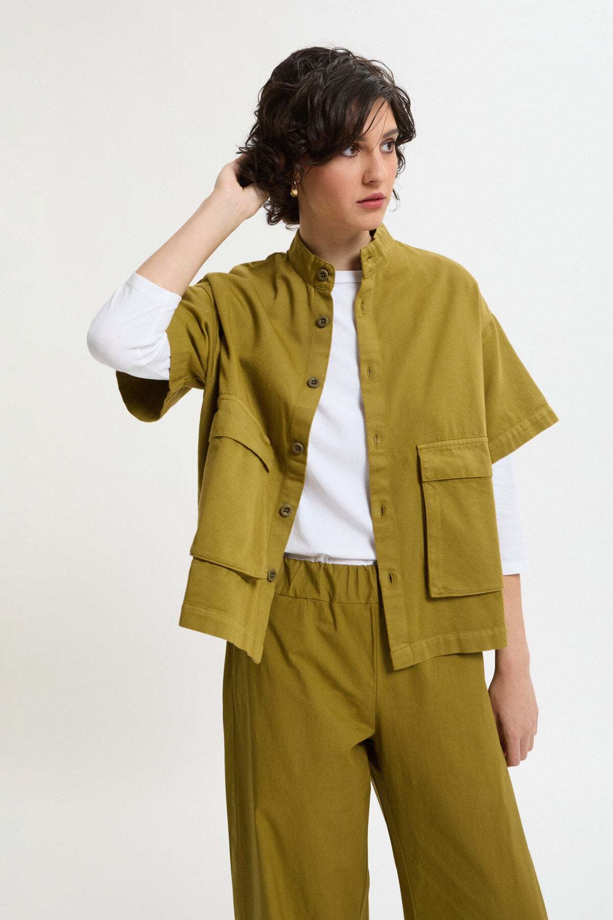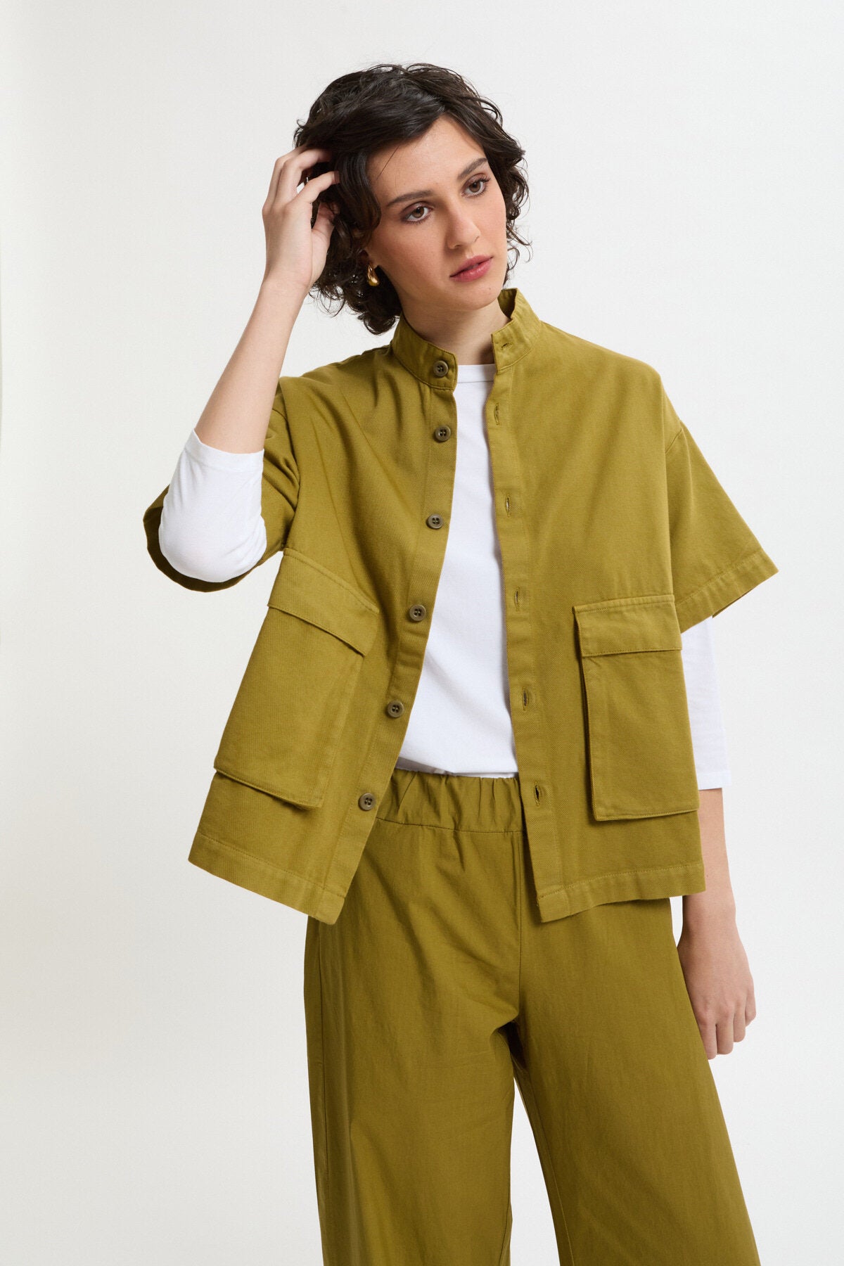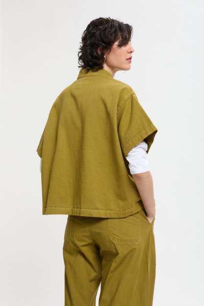 Giacca dritta con maniche corte e tasche a soffietto in drill di cotone.