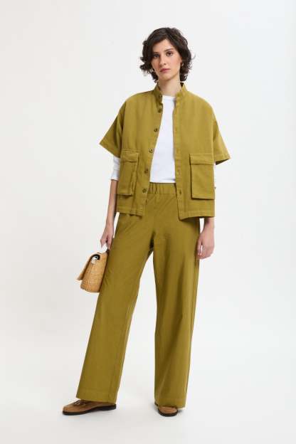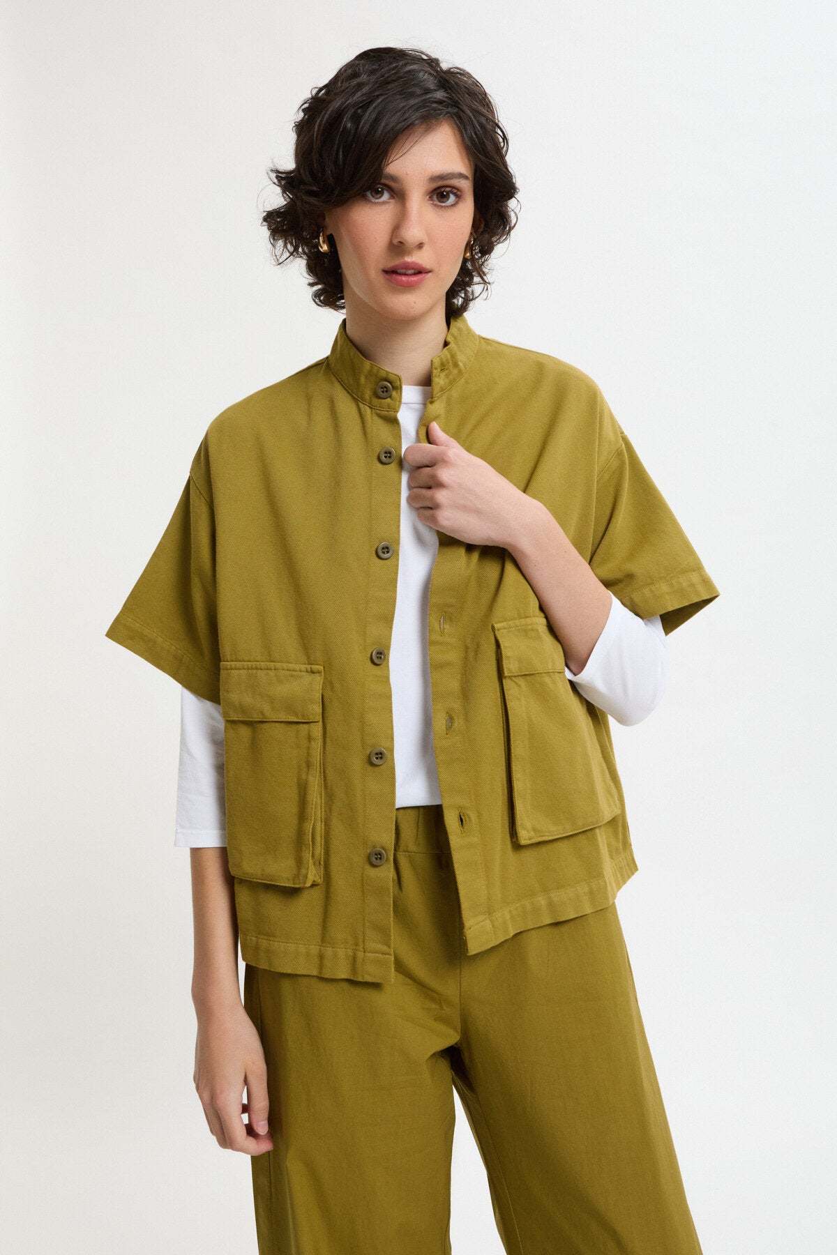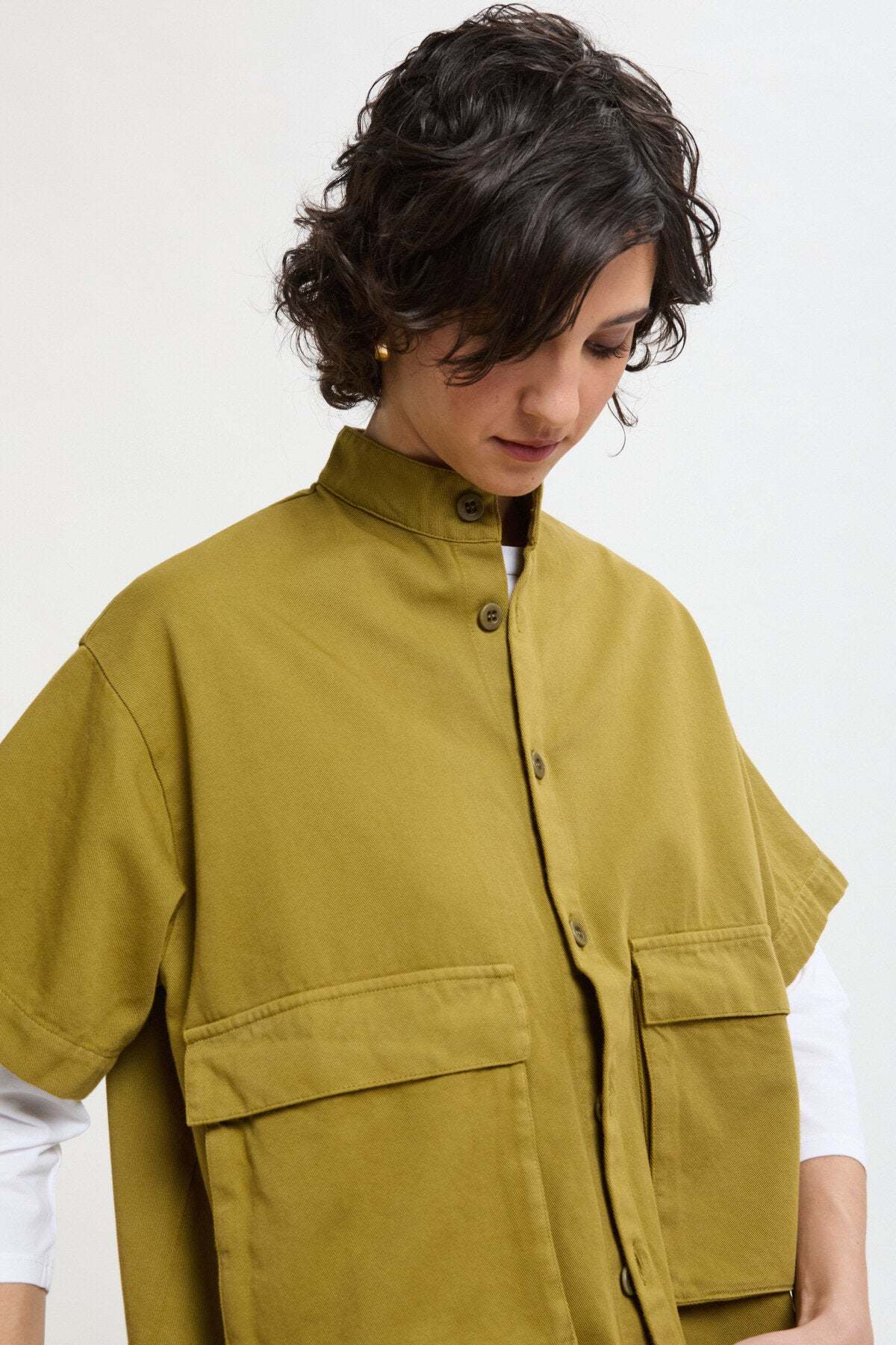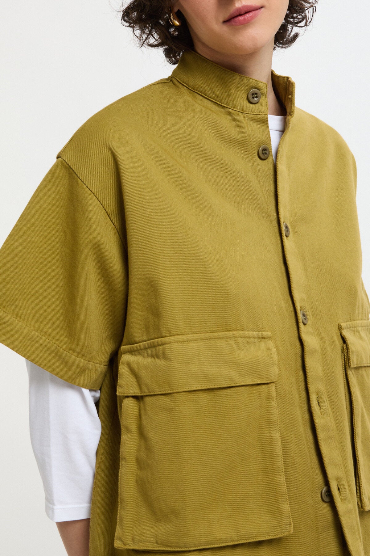 Giacca dritta con maniche corte e tasche a soffietto in drill di cotone.